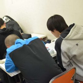 まず入塾直後に、当時のT君にとっては少しレベルの高いクラスに入れ、T君の志望校のレベルの子たちと一緒に頑張らせることにしました。