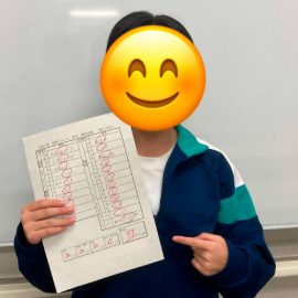 高校生になって初めての定期テストが近づいてきました。塾で予習を進めてはいましたが、テスト直前には分からない問題ばかり。「これどうやるか忘れましたー」という状況です。それでもやることは中学生の頃と同様に、納得がいくまでやり切る姿勢は変わりません。「数学Iが97点でしたー!」と解答用紙を大事そうに見せてくれた時は、とても嬉しそうな表情を見せてくれました。その甲斐あってか、高1の1学期でなんと学年3位に。2学期は、他の教科に比べると苦手意識が残る英語が足を引っ張り7位と順位を落としますが、3学期の通知表では遂に学年1位に!