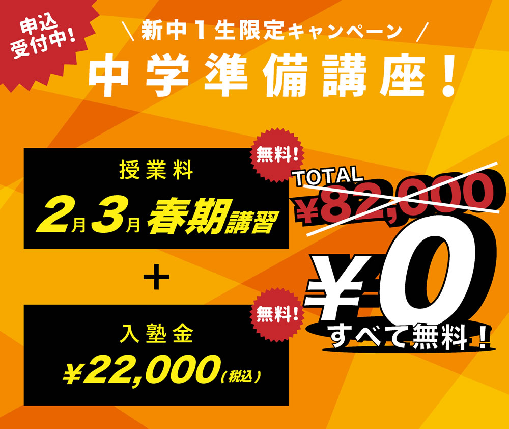 2022年の2月・3月・春期講習の授業料(少人数クラス受講対象)を、完全無料でご案内します!!