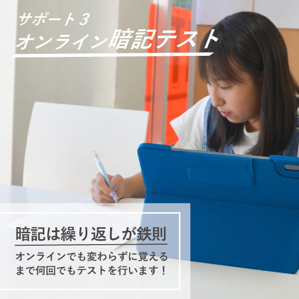 スクールTENTOLではこれまでのノウハウを活かして、講師が、“覚えている時間”から“暗記確認テスト”まで、オンラインでもしっかりチェックします!
