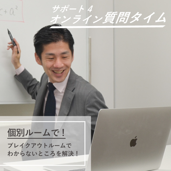 「同席しているみんなに聞かれるのはちょっと…」という場合には、オンライン授業のシステム(ブレイクアウトルーム)を活用し、講師と1対1の状況で質問に答えます!