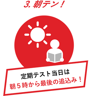 朝テンでは、数時間後にせまったテストに向けて、最後のか確認を行うことで、自信をもってテストに臨むことができます。