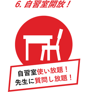 なんと!!自習時間中は、必ず講師が1名以上待機しています!常に講師が生徒の様子を見て回り、『できない』・『分からない』問題を対応します。そのため、分からない部分をすぐにその場で質問できるので、効率よく勉強ができます!