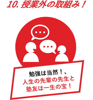 また、校舎の全ての生徒の性格・学習状況を全講師が共有しているので、たとえ担当していない生徒でも、“ファミリー”の一員として、講師全員が一丸となって、テスト対策指導を行っています。