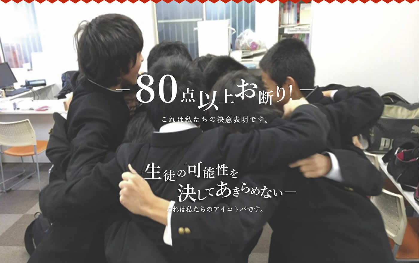 子どもたちは、みんな誰しもが80点以上を取る素質を持っています。テスト直後に来るときの子どもたちの満面の笑みが、私たちは大好きです。