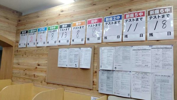 また生徒たちにテストまでの日程を意識させるために、新たに掲示をおこないました!