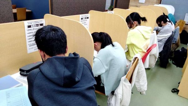テストが終了した生徒たちはテストの復習をし、中学3年生は受験に向けて学力を向上させるために自習スペースを大いに活用しましょう!