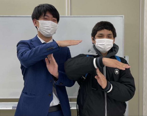 (↑は、前回の定期テストで英語・数学の点数が2倍以上UPした、大東西中の新中3生です、今回は5教科合計点2倍UP達成を狙います!!)