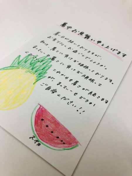夏休みも終わりが近づき私も少し疲労感を感じ始めましたが、生徒から暑中見舞いが届き、元気をフルチャージできました!(単純ですね笑)