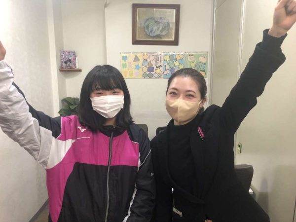 ↑の講師と共に喜びの表情を見せるのは、中学2年生の女の子!