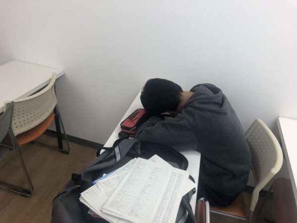 テントルの大東中生たちは、授業があっても無くても自習にきて暗記に勤しんでいました。