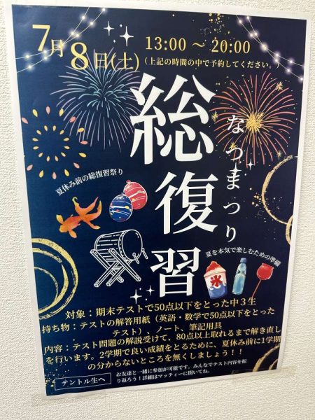 今回のテストで悔しい思いをした生徒達は、2学期で巻き返していきましょう!