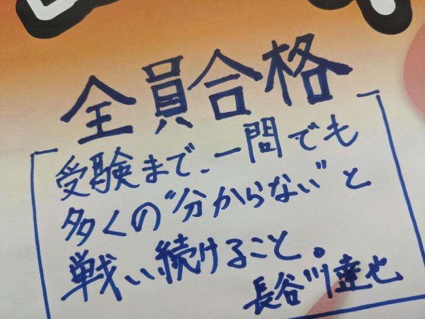 ↑長谷川含め講師たちからのメッセージも入り、受験への気合いも増していきます!(写真は長谷川のメッセージです。)