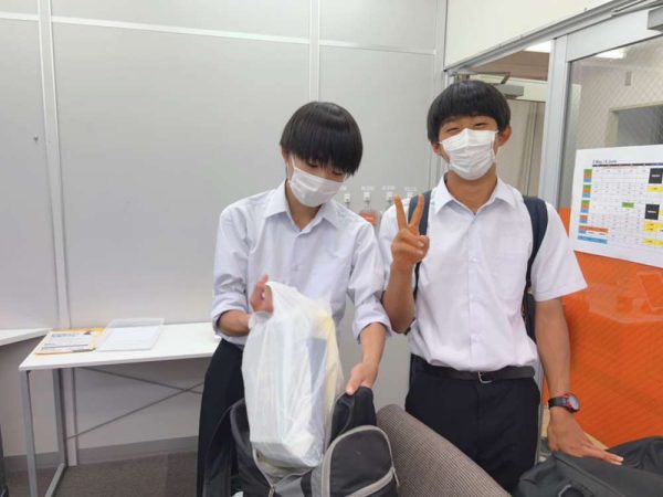 中3生が修学旅行から帰ってきたその足で校舎に来てくれました。