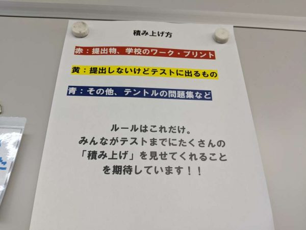 このスペースの前では、毎日テントル生達の“本音”が飛び交います。テスト勉強に“本気”で取り組むテントルならではの光景です。