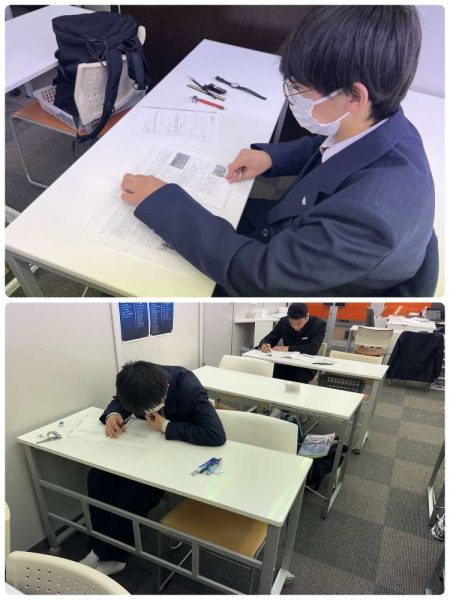 本番と同じ環境で行いますので、生徒たちはみな制服を着てのぞみました。