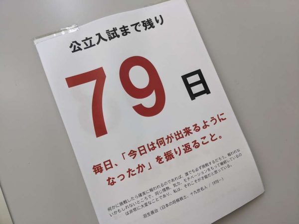 ↑中3生用に公立入試までのカウントダウンを用意しました。受験勉強の支えになるかもしれないメッセージ付きです。笑