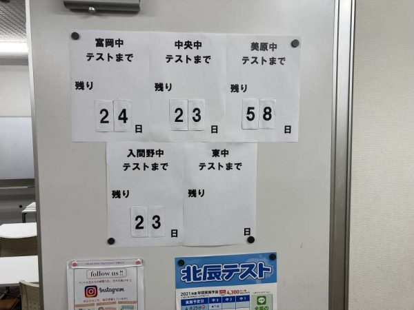 各中学校で年間予定表が配布され、今年度のテストの日程が判明しました。