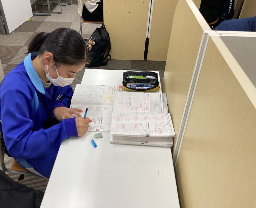 テストで間違った問題をそのままにせず、多くの生徒がやり直しをするために自習に来て復習をしています。