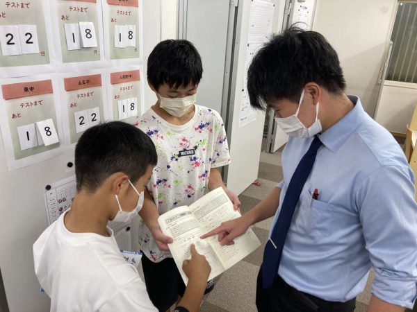 自習中、「わからない」ところがあると、生徒たちは積極的に講師に聞き、その場で解決し、「わからない」をそのままにしないなど、とても意欲的に取り組んでおり、今回のテストに懸ける想いがうかがえます!