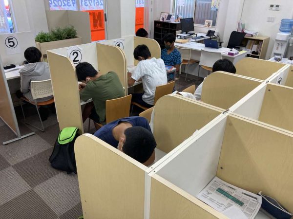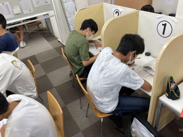 夏期講習が始まったころは嫌々取り組んでいた生徒も、今では早く終わらせるためにテキパキと自習しています。