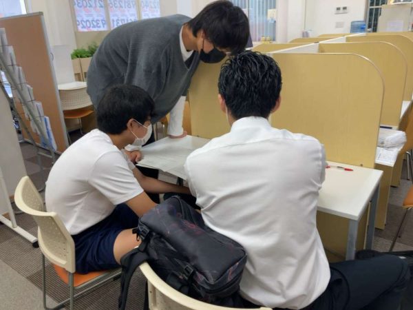 「この問題の答えは、○○であっていますか?」と自己採点やテスト中に分からなかった問題を講師に質問していました!