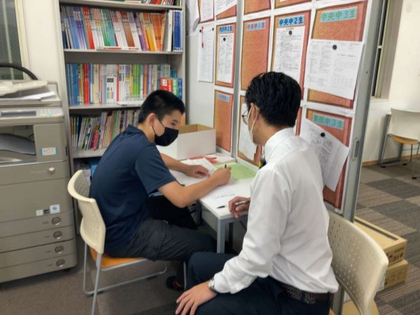 授業が終わった後も残って、テストのわからなかった問題を質問している中3生!