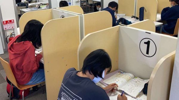 ↑土日講座の様子です。密を避けながら集中して勉強しています。