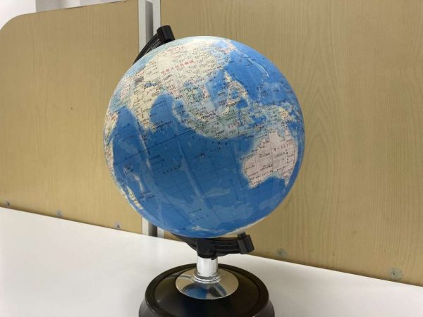 せっかくなので、その地球儀を机に置いたところ、生徒たちも興味津々で、よく手に取って見ています。