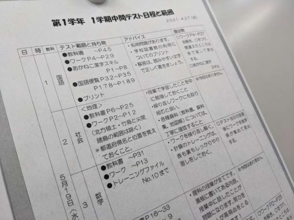 テスト後に毎回“出題の振り返り”を行ない、先生ごとに出題傾向を分析し、そのテストに合わせた対策を行ないます!