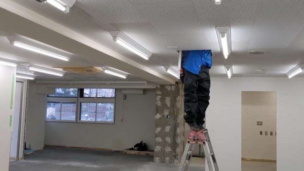 本日は電話線の工事の方にも来てていただき、校舎電話番号の開通作業が行われました。