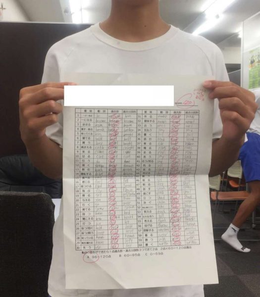 例えば、英語の課題として単語の暗記が出ていたら、講習期間中に”満点”を取れるようになるまで、練習とテストを繰り返します。