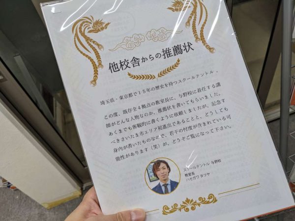 ↑他校舎教室長からの推薦状や、その他複数の資料を同封しております!