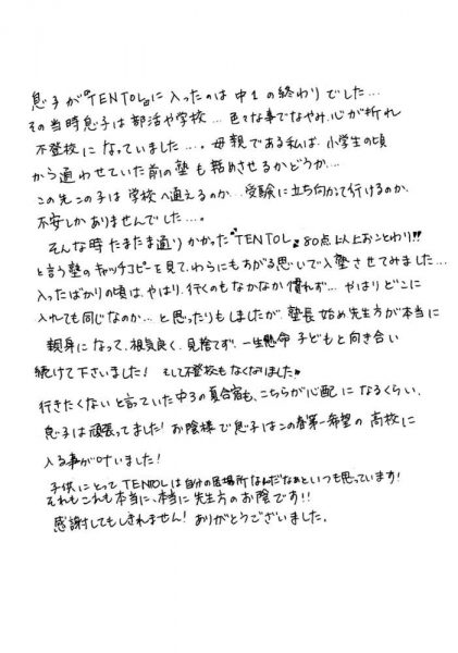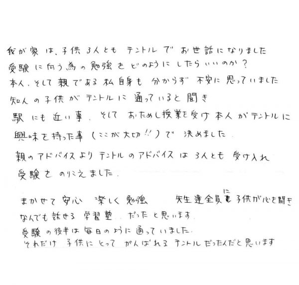 今回の記事では、過去にテントル生の保護者様からいただいた、直筆のメッセージをご紹介いたします!