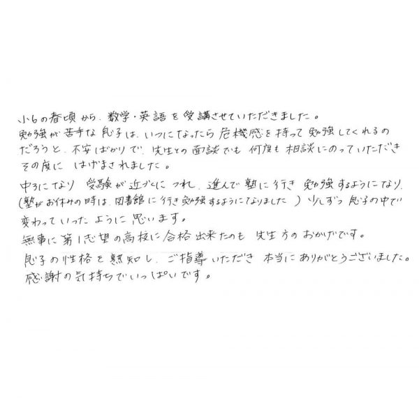 これまで多くの保護者様方から、お子様の卒塾時にメッセージのをいただいておりますが、今回は、その中からいくつかを抜粋してご紹介いたします!