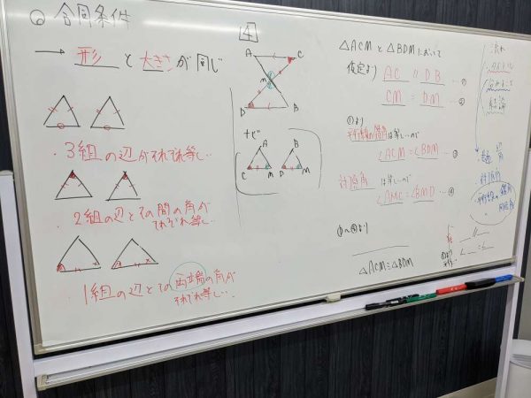 ↑数学の授業の様子です。証明問題をクリアするため、特訓中です!