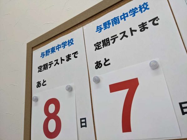 校舎内でテストまでのカウントダウンを行い、目標日を意識しながら勉強を進めていきます。