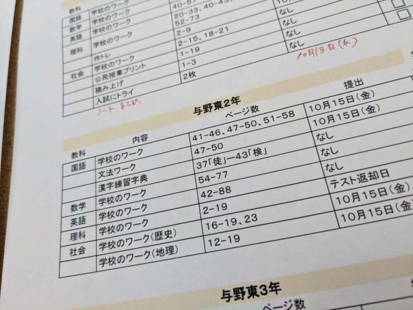 校舎近隣の与野南中・与野東中が2学期中間テスト1週間前となりました!