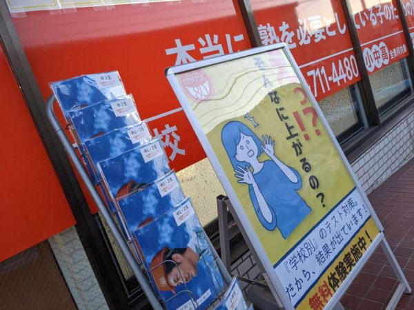 校舎前のパンフレットをお手に取り、冬期講習の情報をゲットしてくださいね!