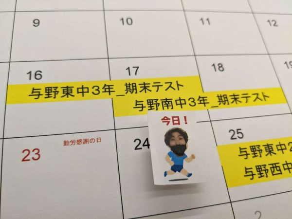 ↑校舎オリジナルのカレンダーで、テスト日程を管理しています。