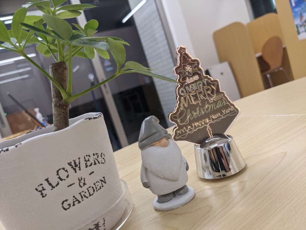 ↑前回に引き続きクリスマスの飾り付けをご紹介します。今回は、私のデスク周りで光り輝くイルミネーションとサンタさんです!笑