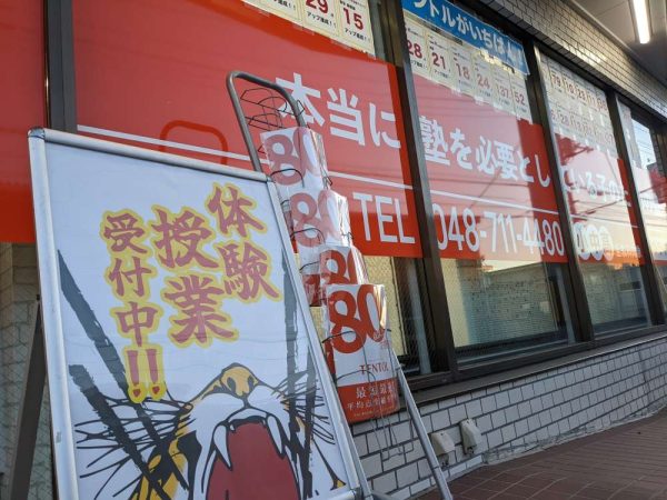 ↑校舎前のパネルを2022年版に変更しました。無料体験授業、受付中です!