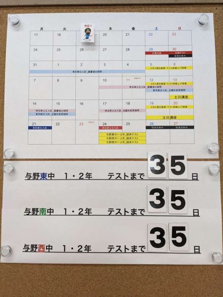 校舎内に、学年末テストまでのカウントダウンの掲示も開始しました!