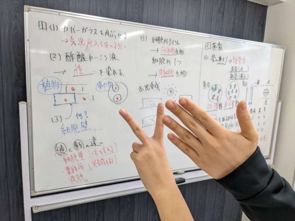 ↑板書記録を撮ろうとしたら、生徒たちのピースが入ってしまいました。笑