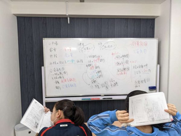 ↑中3生の授業の様子です。公民分野の演習と解説を行いました!