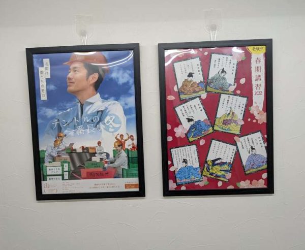 ↑校舎内に掲示している講習パンフレットです!与野校は昨年の6月開校のためまだ2枚しかありませんが、だんだんと額縁が増えていく様子を楽しみにしていてください!