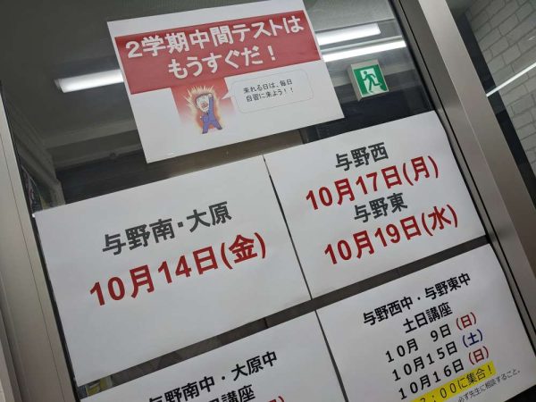 校舎近隣の中学校で、2学期中間テストが近づいてきました。