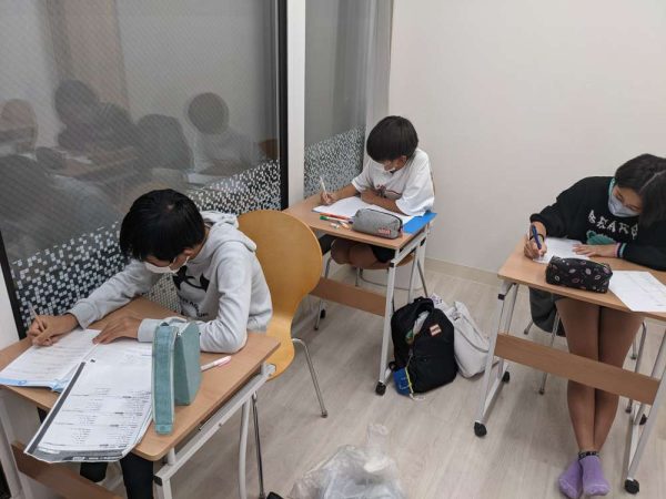 テストを迎える与野南中と大原中の生徒たちは、テスト当日の朝もテントルに来てギリギリまでチェックを行いました。