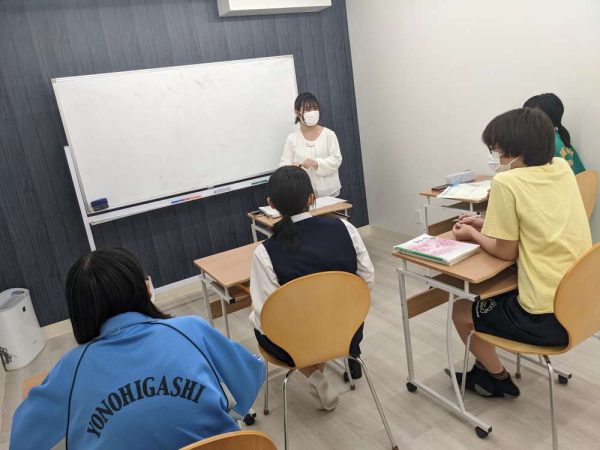 ↑中3生の英語の授業です。テスト前に、講師からモチベーションの上がる一言!