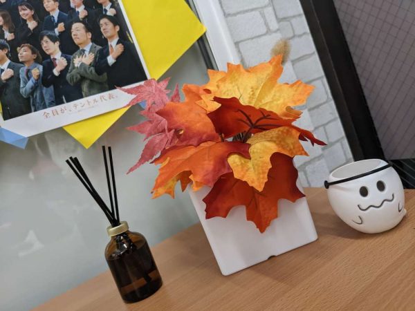↑校舎入口にも秋を彩るアイテムを設置しました!